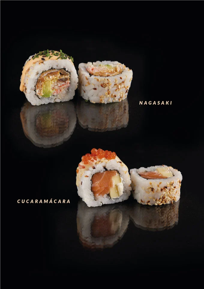 Disfruta este mes de un delicioso Menú San Valentín con 20% de descuento, que incluye dos rollos de sushi: Nagasaki (completo 10 bocados) + Cucaramácara (completo 10 bocados)