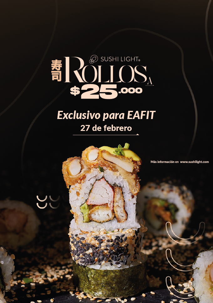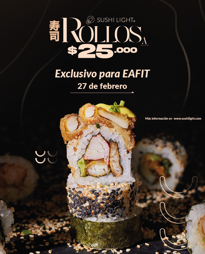 ¡Te esperamos este viernes 27 de febrero para que asistas con tu combo y parches disfrutando de esta promo exclusiva en la U en Sushi Light!: ¡Rollos a $25.000! Una promo perfecta para degustar tus rollos favoritos a un precio especial y sorprendente. Agenda en tu calendario esta fecha. 😉